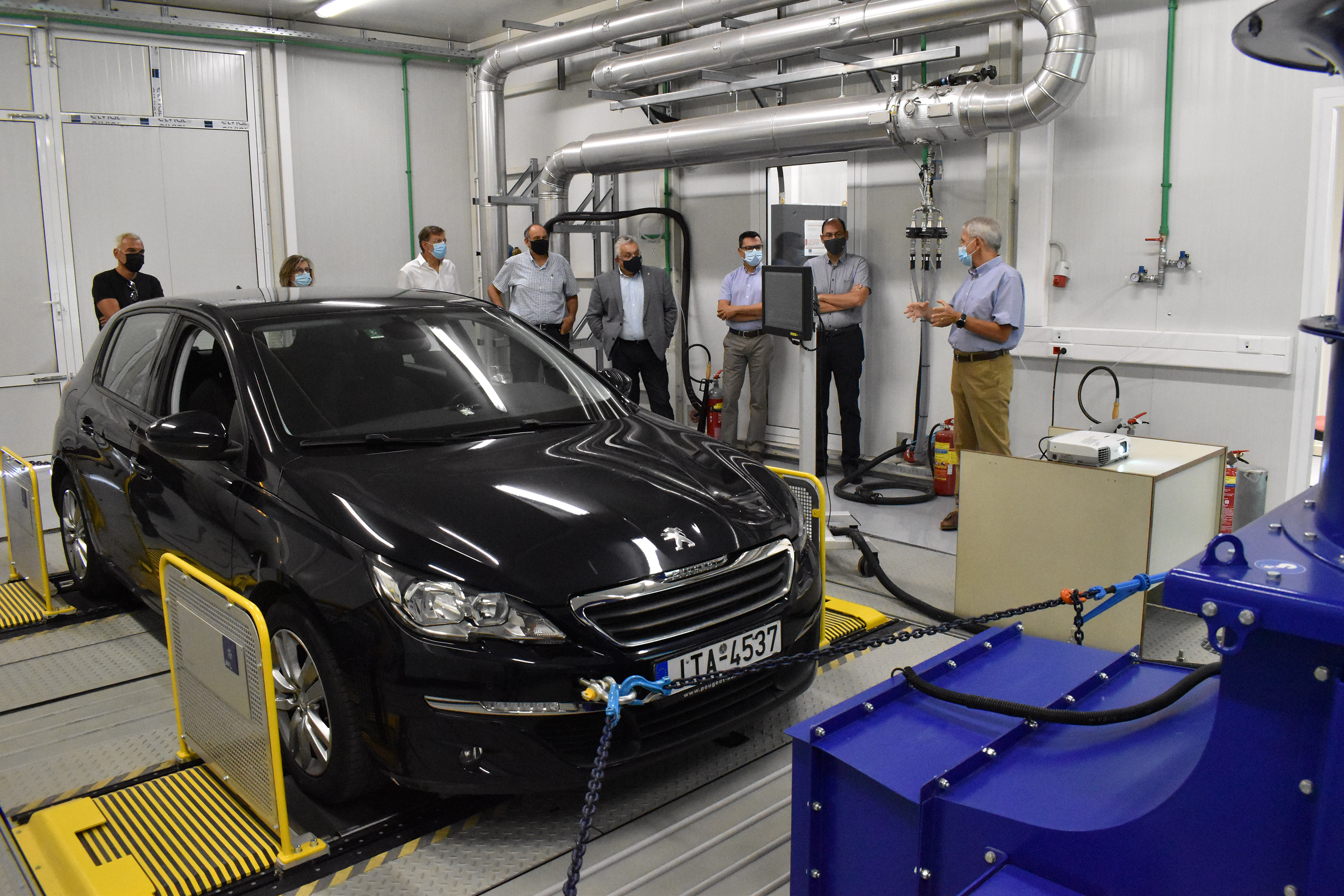 We were more than happy to welcome today the Rector of Aristotle University, prof. Nikos Papaioannou and the Dean of the Engineering Faculty, prof. Kyros Yakinthos. The director of LAT/AUTh offered a tour in FuVEP facilities showing the recently commissioned equipment. The photo is taken inside the new chassis dyno test cell.